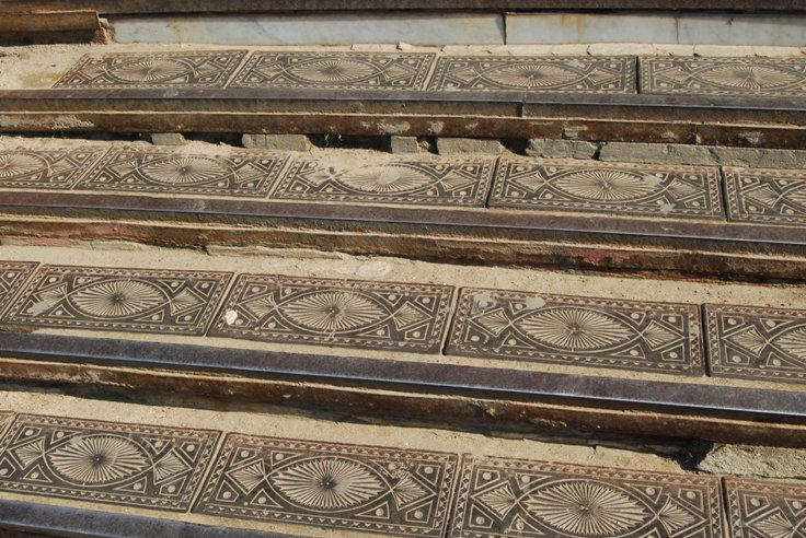 Выходя из здания вокзала*, Пётр обратил внимание на необычные чугунные ступени с изящным орнаментом*.