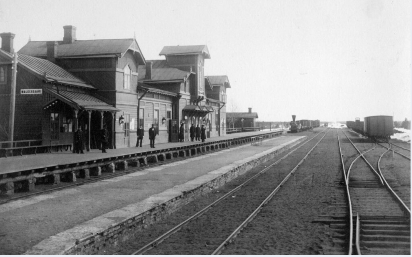 Пассажиры, следовавшие дальше, придерживая фуражки, шляпки и котелки, направлялись в здание таможенной заставы. У входа стояли железнодорожные жандармы в тёмно-синих мундирах с цепкими взглядами; каждого оглядывали внимательно и без спешки. Особенно — пассажиров третьего класса и финнов.