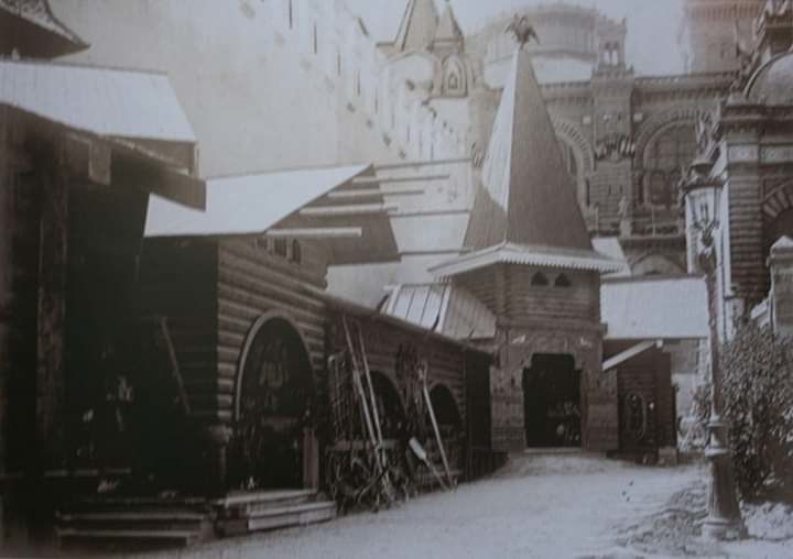 Под стеной Кремля притулилась вереница небольших деревянных построек. На первый взгляд, они выглядели гораздо скромнее блистающего светлого детинца, заслоняющего их со стороны Сены. С главной аллеи площади Трокадеро не враз и заметишь, пока не завернёшь на узкую улочку между крылом дворца и Российским павильоном. Но стоило увидеть и присмотреться - и неизъяснимое очарование чего-то родного, того, что всегда остаётся в самой глубине души - русский дух, наверное? - брало в полон и более не отпускало. Казалось, она появилась здесь прямиком из сказки - причудливая деревянная галерея с бревенчатой церковью, высоким теремом, переходами, навесами, сенями, палатами и светлицами.
